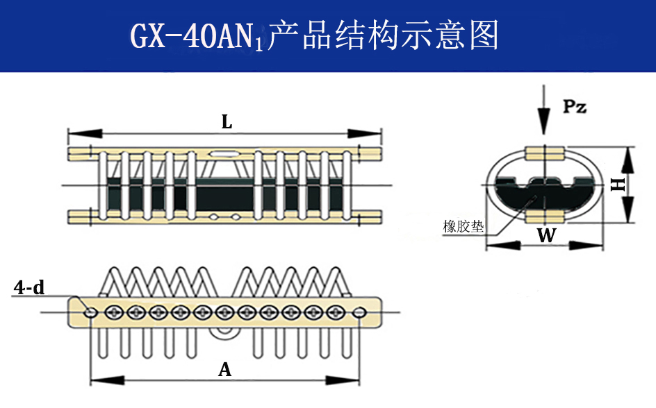 產(chǎn)品展示 > GX-N新橡膠墊抗強(qiáng)沖擊鋼絲繩隔振器 > GX-40AN?新型抗強(qiáng)沖擊鋼絲繩隔振器