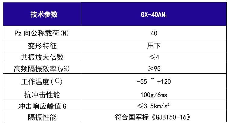 GX-40AN?型鋼絲繩隔振器Pz向公稱載荷為40N(4.08kg),是對GX型鋼絲繩隔振器的進(jìn)一步改進(jìn),將長方體的橡膠墊改為與鋼絲繩緊密相貼的拱形橡膠墊,不僅對Pz方向進(jìn)行隔振緩沖,而且也保證了其它方向的隔振緩沖效果,可滿足高達(dá)100G以上的抗沖擊要求,適用于裝甲車輛、自行火炮、機(jī)載、車載、艦載等電子、機(jī)械設(shè)備、計(jì)算機(jī)與儀器儀表在高低溫、化學(xué)污染等惡劣環(huán)境下的隔振緩沖,導(dǎo)彈衛(wèi)星的運(yùn)載、導(dǎo)航與發(fā)射系統(tǒng)的安全防護(hù)以及各類工業(yè)動(dòng)力機(jī)械的工業(yè)降噪隔振等方面。